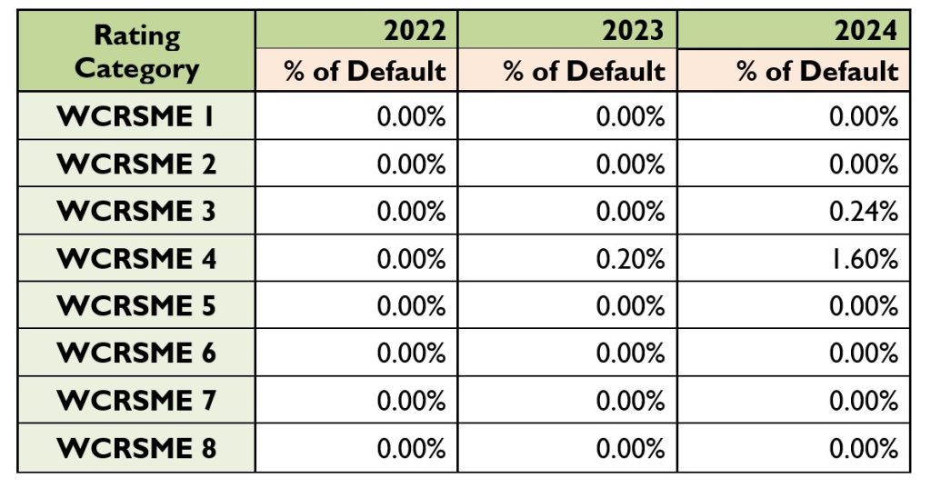 WCRCL’s default rate carried out to see whether any rated entity has defaulted in particular period i.e. has gone down to the level of WCRSME 5 or lower rating category.